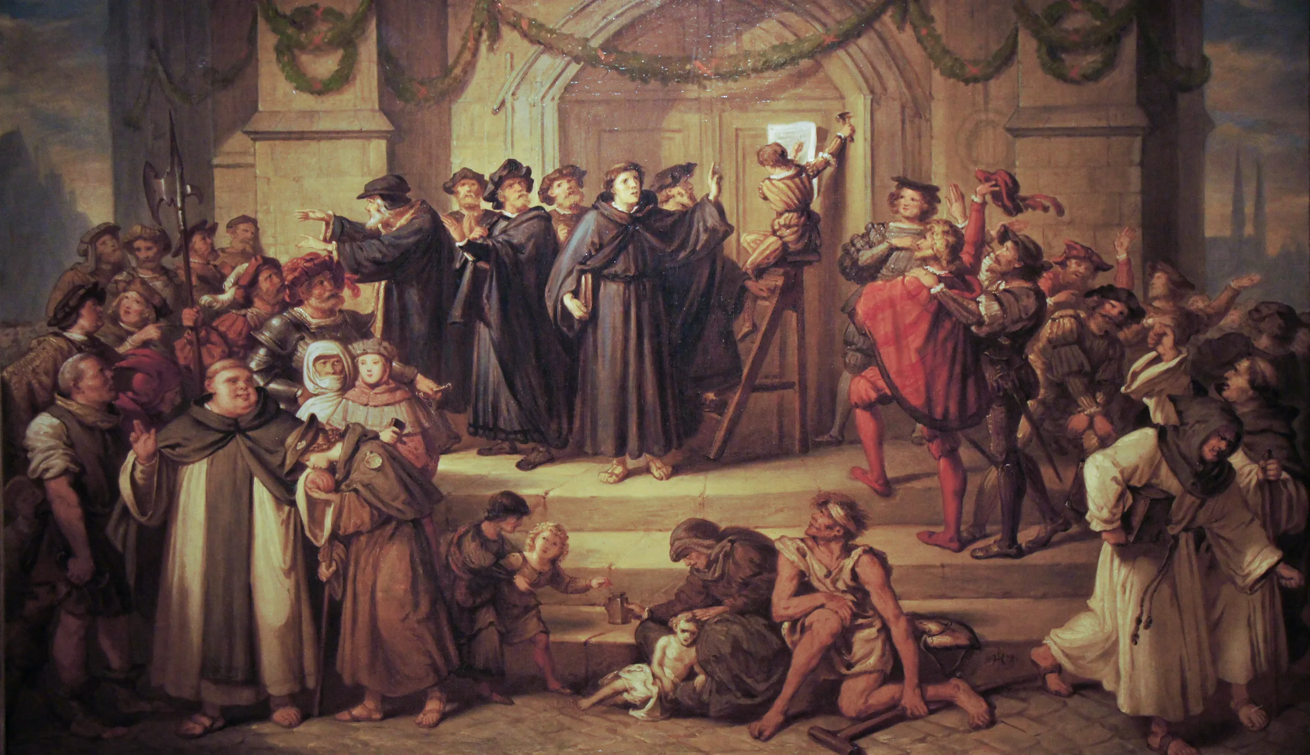 In the Luther House in Wittenberg hangs a striking painting by Julius Hübner that captures a pivotal moment in Christian history. It shows Martin Luther marching boldly to the doors of the Castle Cathedral to nail his 95 theses—strong objections to the Church’s sale of indulgences and the assumed authority of the Pope.